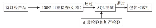 測試流程:燈檢崗位 100%目視檢查后,需提交 QA專員進行AQL測試驗收。AQL測試流程見圖1。QA專員開展隨機抽樣時,必須覆蓋所有參與燈檢人員目檢后的產品。由于藥品的特殊屬性,放寬檢驗和轉移規(guī)則不適用于藥品的抽樣檢查。因此,QA 專員的抽樣檢驗分正常檢驗和加嚴檢驗,該抽樣檢驗適用《計數抽樣檢驗程序》(GB / T 2828. 1 — 2012)[13],等同采用ISO 2859 -1:1999[14]。QA 專員從正常檢驗開始,當初檢(第1次提交檢驗)結果表明過程平均劣于AQL值時,則應轉至加嚴檢驗。加嚴檢驗前,燈檢人員需對不接收批返工燈檢,即再次進行100%目視檢查,完成后再提交QA專員進行AQL測試。QA專員根據抽檢結果做出接收批或拒絕批的決定。由于A類不合格對無菌產品的質量可能是致命的,質量管理部門可明確規(guī)定,燈檢人員不承擔處置不合格品的責任和權限;一旦燈檢過程檢出A類不合格,QA 專員有權直接判定不接收該批,相應流程可提前終止。