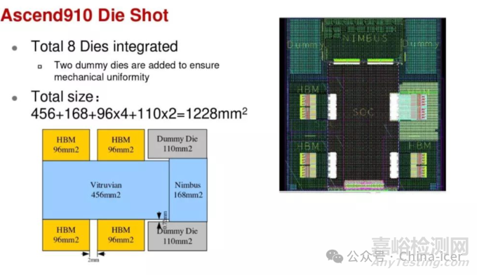 Ascend 910C 選擇了相對成熟的技術(shù):將兩顆獨(dú)立的 Ascend 910B 芯片分別放置在各自的Interposer,再通過有機(jī)基板將兩個Interposer連接起來。這種封裝方式雖然在芯片間互聯(lián)帶寬上可能低于 NVIDIA 的先進(jìn)封裝方案,但具有更低的成本、更高的良率以及更快的量產(chǎn)速度。