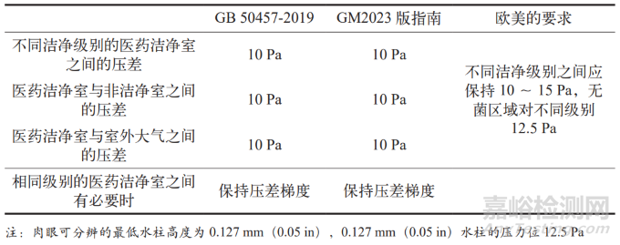 在法規(guī)和指南中,對(duì)壓差的要求如表 2 所示。從表 2 中的數(shù)據(jù)可見,10 Pa 與 12.5 Pa 的差異并不顯著,這種數(shù)值上的差別主要是由于歷史原因造成的,而在風(fēng)險(xiǎn)等級(jí)上并無(wú)明顯差異。