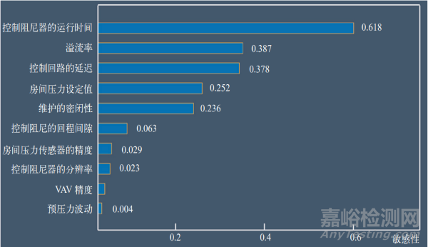 潔凈區(qū)域的壓力控制首先需要穩(wěn)定的送風(fēng)量。從計(jì)算中可以看出,滯留風(fēng)量的微小變化都會(huì)影響壓力。圖 5 所示是壓差控制敏感性影響因素。