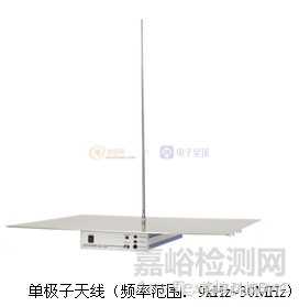 天線按照測量頻率可簡單分為:單極垂直天線(30MHz以下,只有垂直極化方向),雙錐天線(30MHz-300MHz),對數(shù)天線(1GHz以下),喇叭天線(1GHz以上)。