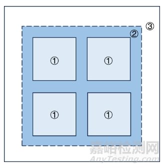 正中間的四個(gè)淺藍(lán)色方塊區(qū)域①是四個(gè)完全相同的die,die與die之間以及周圍的一小條虛線包圍的區(qū)域②叫做 “scribeline” 即劃片道,這兩個(gè)區(qū)域合起來(lái)是曝光區(qū)域,也叫“shot”。shot之外的部分是光罩的第三個(gè)區(qū)域,基本上是不會(huì)曝光的。一張mask包含這三個(gè)區(qū)域,所有這些區(qū)域里面都有什么圖案呢?