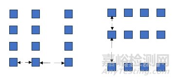 圖4 a圖適用于Nikon光刻機(jī)的激光步進(jìn)對(duì)準(zhǔn)方式(LSA), 右圖適用于Nikon光刻機(jī)的場(chǎng)對(duì)準(zhǔn)方式(FIA),現(xiàn)在標(biāo)識(shí)的方向光刻機(jī)可測(cè)出每個(gè)shot的x方向的位置,旋轉(zhuǎn)90度就可測(cè)出y方向上的位置