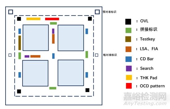 除了以上這些,還有光學(xué)關(guān)鍵尺寸的OCD標(biāo)記,用于測(cè)膜厚的PAD區(qū)域以及用于電性測(cè)試的Testkey,這幾部分屬于量測(cè)和測(cè)試(WAT)的內(nèi)容,以后會(huì)陸續(xù)跟大家分享,不在這里贅述了。