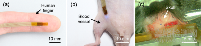 文章通過(guò)應(yīng)用傳感器監(jiān)測(cè)血流動(dòng)力學(xué)參數(shù),并以表貼和插入的形式對(duì)人體和小鼠模型進(jìn)行缺氧誘導(dǎo)測(cè)試和光遺傳學(xué)刺激,證明了該方法的可行性,展示了其在包括神經(jīng)血管耦合研究在內(nèi)的廣泛生物醫(yī)學(xué)應(yīng)用中的潛力。