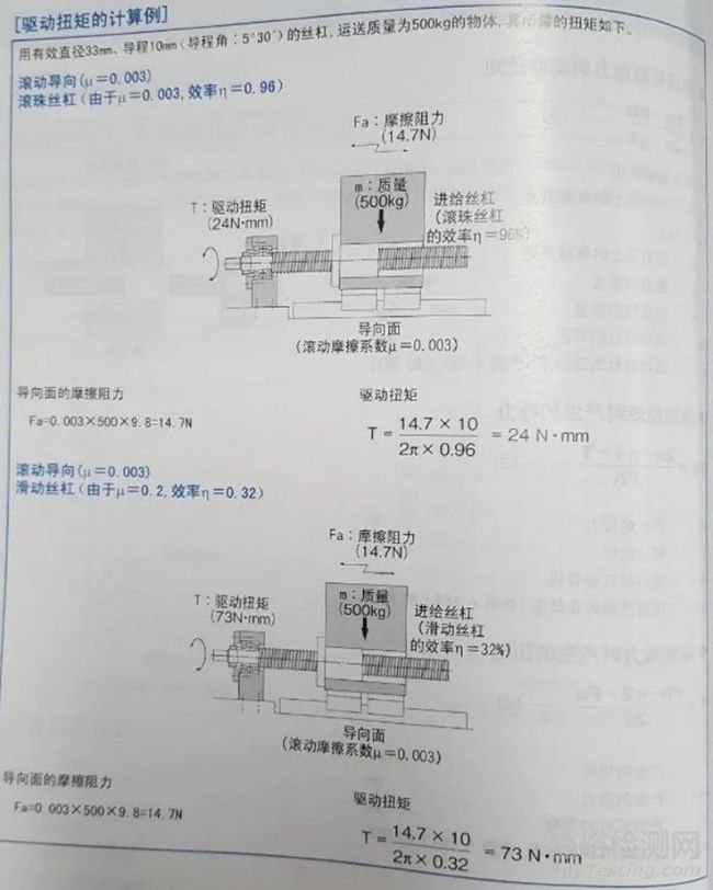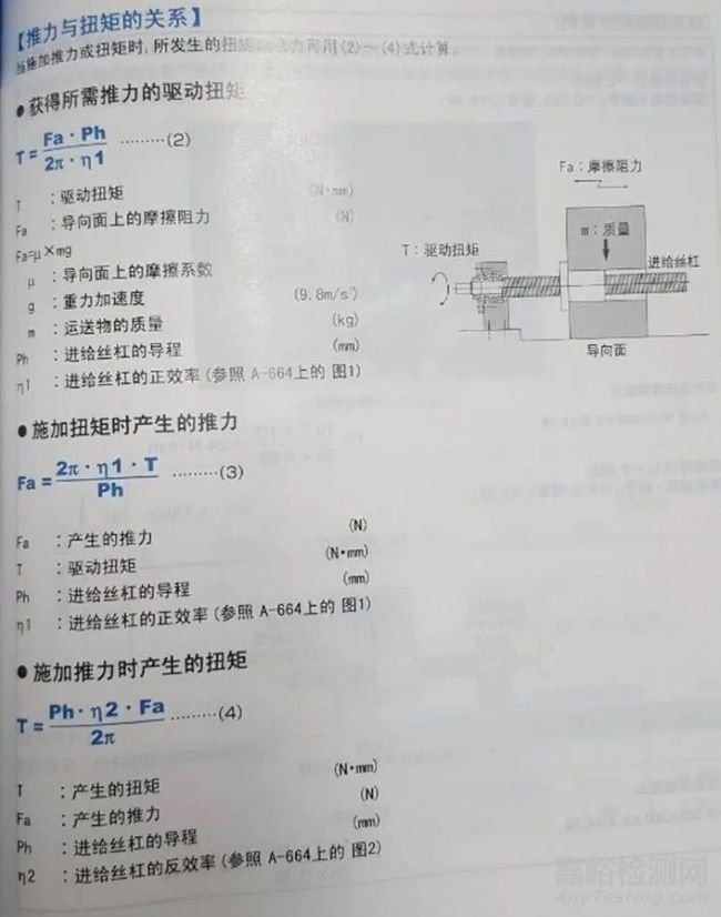 首先,我們需要知道,絲桿的作用,那就是傳遞電機扭矩,將電機的扭矩轉(zhuǎn)化為某個方向的推力,并實現(xiàn)某個方向的進給動作。我們一定要學會一下這些計算知識(本來我是想自己寫的,但是發(fā)現(xiàn)那些公式的輸入太麻煩,而且也太費力了,編寫公式真的不是我的強項,所以我就只能用某品牌的選型樣本的截圖來代替了,當然他們的這個計算要比我做得更專業(yè)和詳細,是很具有參考價值的)。