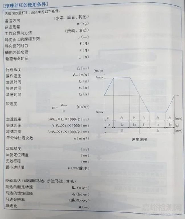 下面這張圖片,可以讓大家了解一下絲桿的一些使用條件和參數(shù)。