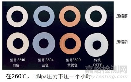 圖3-不同的改性PTFE和傳統(tǒng)純PTFE的蠕變測(cè)試對(duì)比
