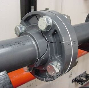 非金屬類法蘭就必須選擇預(yù)緊力要求比較小的墊片,否則很可能會(huì)有在法蘭上緊過(guò)程中,墊片還沒(méi)有壓緊而法蘭已經(jīng)壓碎的情況出現(xiàn)(如圖4)。