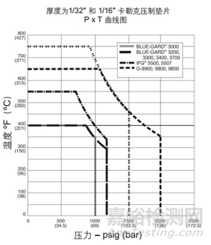 圖7-GARLOCK常見(jiàn)壓制墊片的P╳T值圖