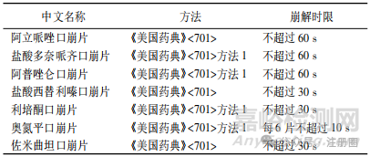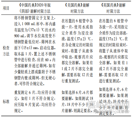 ▲表2-國(guó)內(nèi)外藥典崩解試驗(yàn)分析方法及限度要求