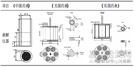 ▲表3-國(guó)內(nèi)外藥典崩解試驗(yàn)儀器結(jié)構(gòu)
