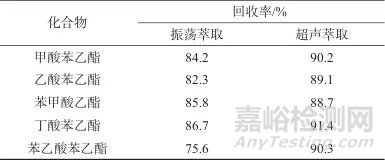 表2振蕩萃取和超聲萃取的回收率