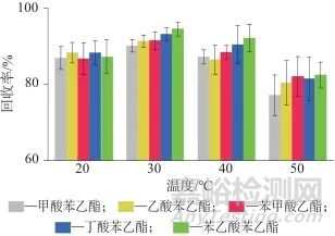 圖2不同萃取溫度時(shí)的回收率