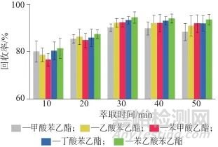 圖3不同萃取時(shí)間時(shí)的回收率