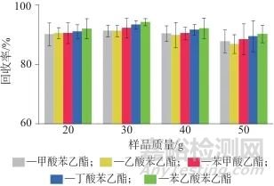 圖4不同樣品質(zhì)量時(shí)的回收率
