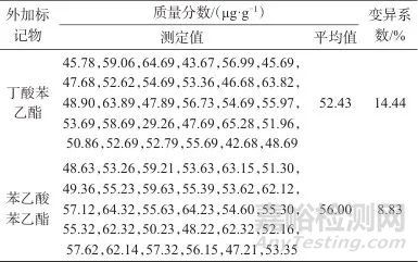 表5批次Ⅰ加香煙絲中外加標(biāo)記物測(cè)定結(jié)果