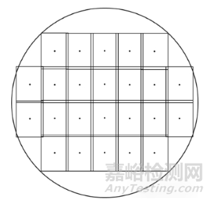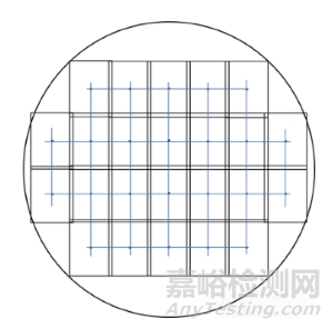 圖3 參考層的shot,黑點(diǎn)代表中心位置,黑點(diǎn)構(gòu)成的藍(lán)色連線是步進(jìn)曝光的網(wǎng)格