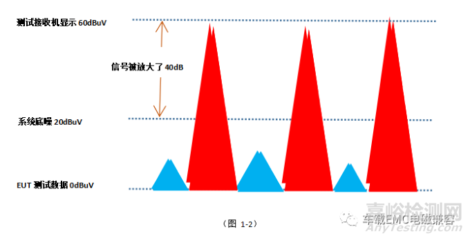 當(dāng)EUT的測(cè)試數(shù)據(jù)比底噪低時(shí),測(cè)試數(shù)據(jù)會(huì)被底噪淹沒、這種情況下我們是無法掃描到樣機(jī)的實(shí)際信號(hào)。