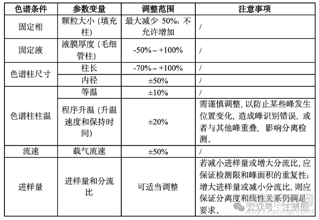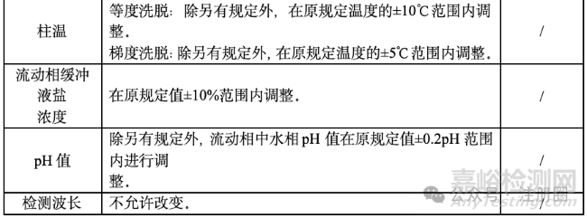 2.3 修訂液相色譜條件(參數(shù))允許調(diào)整的范圍
