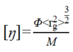 其中,[?]為高分子的特性黏度,rg為根均方半徑,M為高分子的分子量,Φ為常數(shù),將公式(5)變更,得到: