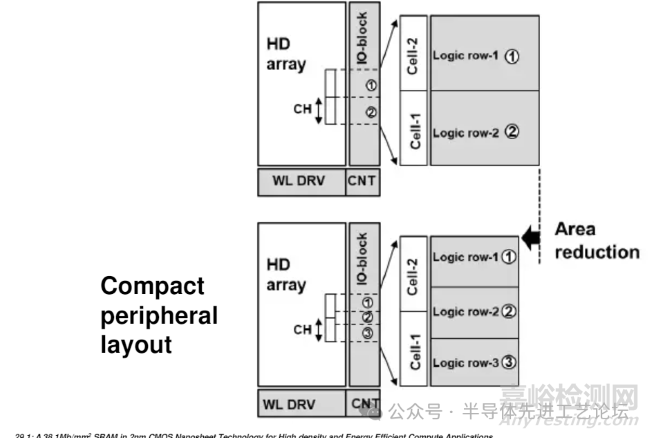 采用2位-3行結(jié)構(gòu)的緊湊型外圍布局是高密度SRAM面積微縮的關鍵調(diào)節(jié)手段。