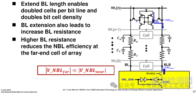 更高的位線電阻會降低陣列遠端單元的NBL(負位線)效率