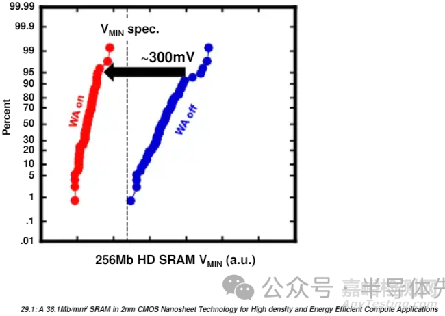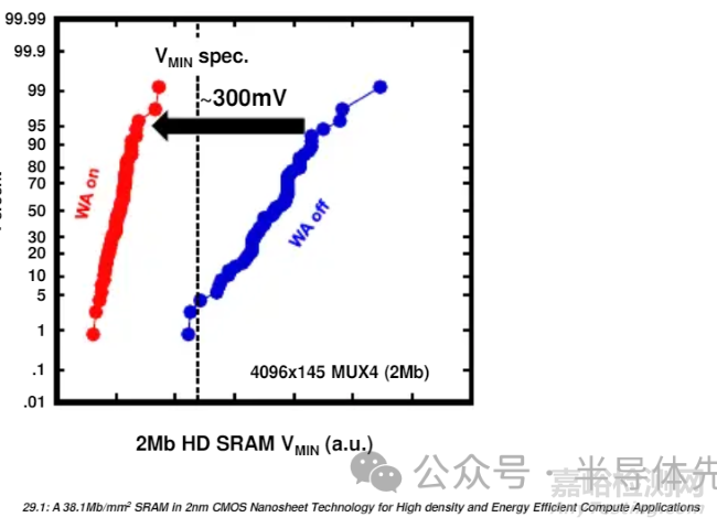 2Mb高密度(HD)SRAM最低工作電壓(VMIN)累積分布圖