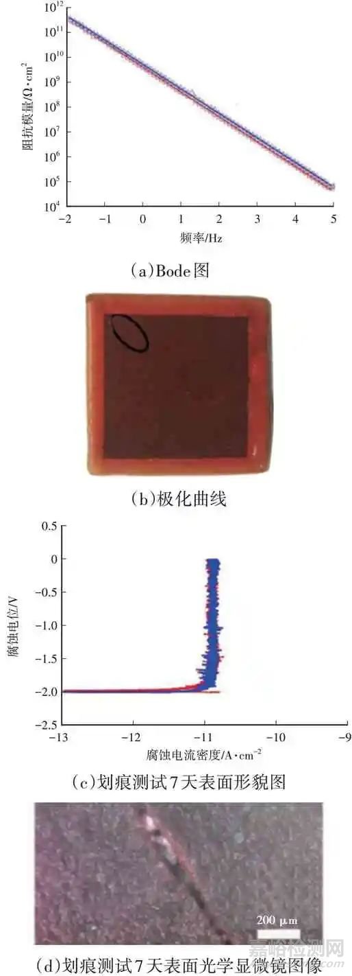 此外,研究人員通過一步噴涂制備超滑表面。Zhang[49]等受青蛙皮膚的啟發(fā),通過一步噴涂由環(huán)氧樹脂、硅油、改性納米TiO2和改性微米云母粉的混合物,制備了一種仿生無氟多功能超滑涂層(Multifunctional Slippery Coating,MSC)。與超疏水涂層和傳統(tǒng)SLIPS 的特殊界面防腐機理不同,MSC將硅油儲存在涂層表面和內(nèi)部,使涂層整體具有出色的阻隔效果,對鎂合金表現(xiàn)出超長效的防腐能力。在經(jīng)過中性鹽霧試驗60 天和質(zhì)量分數(shù)為3.5%的NaCl 溶液浸泡60 天后,涂層仍展現(xiàn)出優(yōu)異的腐蝕保護能力,且MSC 的劃痕缺陷區(qū)域在鹽霧試驗14 天后僅在劃痕區(qū)域出現(xiàn)輕微點蝕,如圖8所示。MSC 優(yōu)異的防腐性能促進了鎂合金在更廣泛的領(lǐng)域的應(yīng)用。