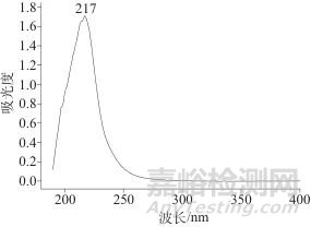 圖1三肽-1紫外吸收光譜圖Fig. 1UV absorption spectrum of Tripeptide-1