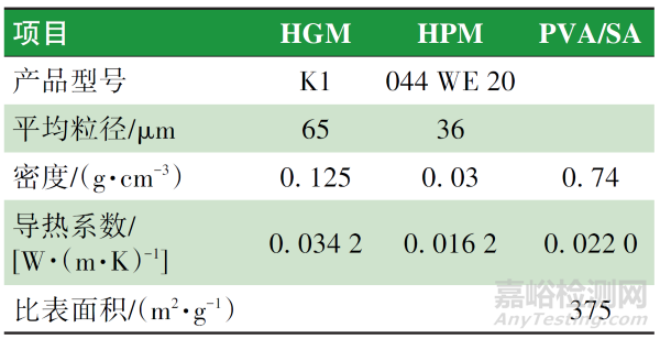 表1 HGM、HPM 和PVA/SA 的詳細(xì)參數(shù)