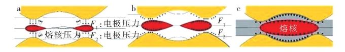 圖2 普通平電極電阻點(diǎn)焊熔核的成長(zhǎng)過(guò)程[18]