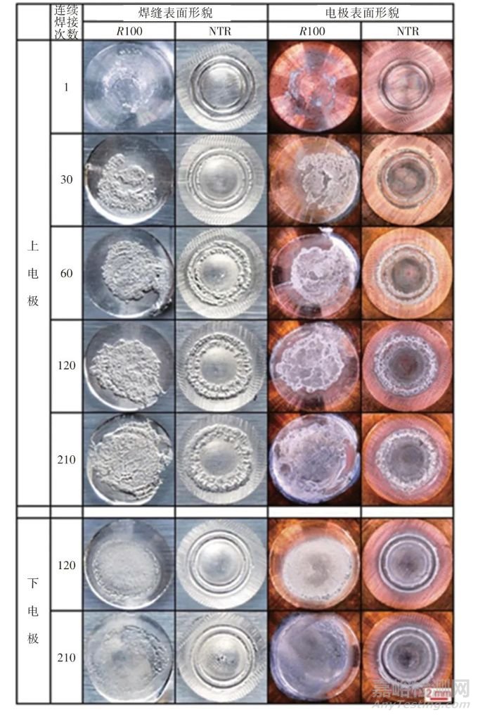 圖5 連續(xù)焊接中焊縫和電極表面形貌的變化[19]
