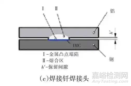Zhang等[29-30]提出了金屬凸點(diǎn)輔助電阻點(diǎn)焊(Metallic Bump assisted Resistance Spot Welding,MBaRSW),如圖6所示,該技術(shù)結(jié)合了低能量冷金屬過(guò)渡(Cold Metal Transfer,CMT)堆焊與電阻點(diǎn)焊的優(yōu)點(diǎn)。由于MBaRSW接頭受限的散熱路徑,相比傳統(tǒng)RSW接頭具有更大的熔核尺寸,同時(shí)減少了接頭內(nèi)部的氣孔,有效抑制了鋁側(cè)材料的減薄。此外,MBaRSW工藝中的凸點(diǎn)設(shè)計(jì)能夠壓碎并擠出鋁表面的氧化膜,使熔核中幾乎不含有氧化膜。MBaRSW接頭中較高的Si含量抑制了IMC的生長(zhǎng),在特定工藝條件下(如焊接電流8 kA、焊接時(shí)間300 ms),MBaRSW接頭的IMC厚度明顯低于傳統(tǒng)RSW接頭。在力學(xué)性能方面,MBaRSW接頭的拉剪強(qiáng)度達(dá)到了2.8 kN,不僅比傳統(tǒng)RSW接頭高出33%,還超過(guò)了Al-Al同材質(zhì)接頭的最大拉剪強(qiáng)度,展現(xiàn)出卓越的性能優(yōu)勢(shì)。