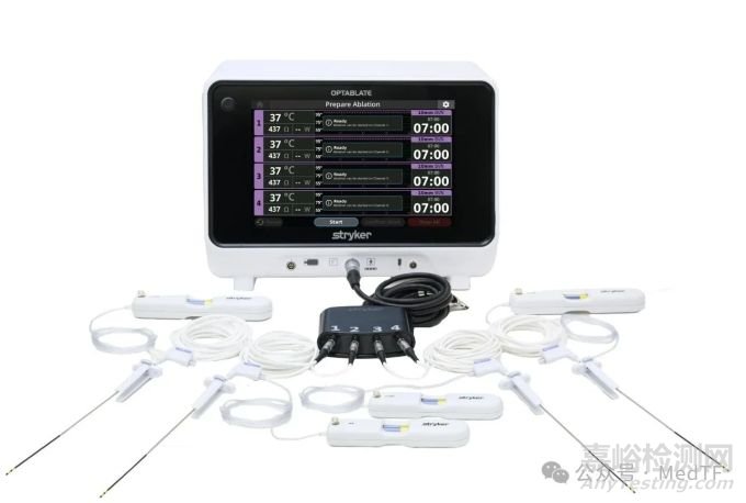 OptaBlate BVN與史賽克已有用于治療骨腫瘤消融的OptaBlate非常類似,都包含一個能量發(fā)生器和四個消融針。OptaBlate BVN和OptaBlate一樣都搭載微型灌注器,通過革命性的微灌注技術實現(xiàn)更快捷、更穩(wěn)定的消融效果。并且OptaBlate BVN能量發(fā)生器支持自定義消融參數(shù)設置,可通過時間與溫度的自由組合優(yōu)化治療過程。
