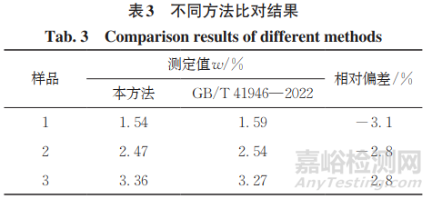 采用本方法與 GB/T 41946— 2022中的離子色譜法對3個樣品進(jìn)行對比測試,結(jié)果如表3所示。