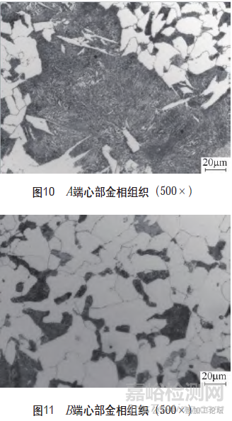 (1)化學(xué)成分分析:取樣部位在軸的兩端,A端和B端,檢測結(jié)果見表1。