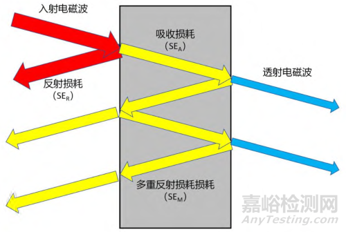 電磁屏蔽 (electromagnetic shielding) 主要通過電損耗和磁損耗這兩種方式消耗電磁波,以達(dá)到屏蔽效果。由于鐵、鈷、鎳這3種金屬屬于鐵磁性材料,因此以鐵、鈷、鎳為核心的傳統(tǒng)電磁屏蔽材料可以對(duì)電磁輻射產(chǎn)生電損耗和磁損耗,是電磁屏蔽涂層的有效成分。其具體原理基本遵循Schekunoff電磁屏蔽理論,屏蔽效能分為電磁波在材料表面的反射 (SER)、電磁波在材料內(nèi)部的吸收 (SEA)、電磁波在材料內(nèi)部多重反射的損耗 (SEM) 這三個(gè)方面。
