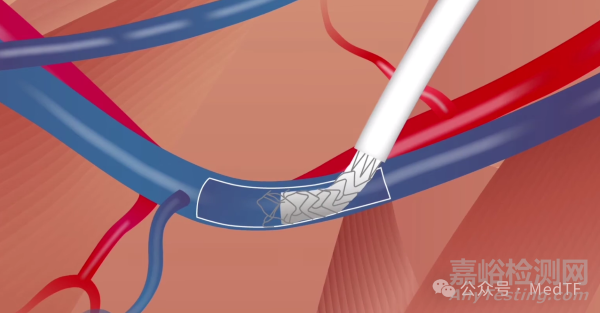 貼合移植物和血管壁的ePTFE覆膜鎳鈦合金柔性段;