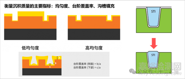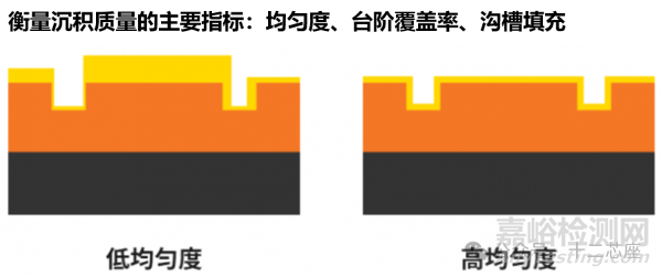 衡量沉積質(zhì)量的主要指標(biāo):均勻度、臺(tái)階覆蓋率、溝槽填充