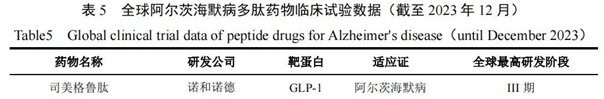 近年來,科研人員發(fā)現(xiàn)GLP-1RA藥物在阿爾茨海默病的治療中顯示出潛在療效。2021年,諾和諾德啟動(dòng)了兩項(xiàng)III期臨床試驗(yàn)EVOKE、EVOKE Plus,圍繞3700名早期阿爾茨海默病患者開展司美格魯肽的臨床療效研究,預(yù)計(jì)將于2025年9月完成EVOKE試驗(yàn)。此外,國(guó)內(nèi)石藥集團(tuán)/天境生物正聯(lián)合推進(jìn)用于阿爾茨海默病治療的生物類GLP-1受體激動(dòng)劑TG103的I期臨床試驗(yàn)(表5),天士力、Genexine等企業(yè)正在提交臨床試驗(yàn)申請(qǐng)。作為備受關(guān)注的研究領(lǐng)域,基于GLP-1RA開發(fā)減緩阿爾茨海默病發(fā)展的多肽藥物如若開發(fā)成功,有望為全球患者帶來健康福音。