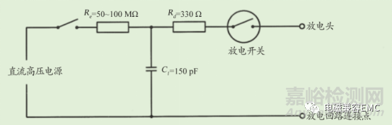 放電電阻Rd代表了從人體手部接觸端到接收設備靜電放電的最壞情況下的阻抗,典型值為 330 ?。充電電阻Re取50~100MΩ。