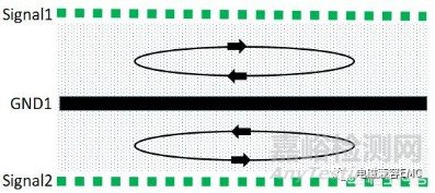 磁通對消的本質就是信號回流路徑的控制,具體示意圖3.1如下: