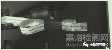觀察顯示屏及其內部控制電路,發(fā)現顯示屏和控制電路之間的信號線是一根較長的排線。排線在機器內部未經處理,與其他電路距離很近。整改方法 :將排線折疊并固定在絕緣外殼處,遠離其他電路模塊及外殼縫隙等(圖3.3)。