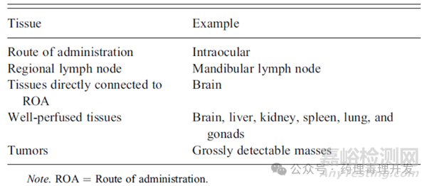 干細(xì)胞給藥部位(route of administration, ROA)和附近的引流淋巴結(jié)與藥效和安全性最相關(guān)。其次則是與給藥部位直接相連接的組織。另外,血供最豐富的器官如肝臟、脾臟和肺也需要重點(diǎn)評(píng)價(jià),可以評(píng)估干細(xì)胞隨血液的移行擴(kuò)散。再就是一些非正常的瘤塊可能與干細(xì)胞的成瘤性相關(guān)。所以干細(xì)胞的組織病理評(píng)價(jià)可以根據(jù)風(fēng)險(xiǎn)進(jìn)行分級(jí),如下表示例。