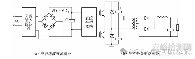 圖中,AC為來自電網(wǎng)的交流電,經(jīng)過電源濾波器,輸出給整流橋(VD1~VD4)。