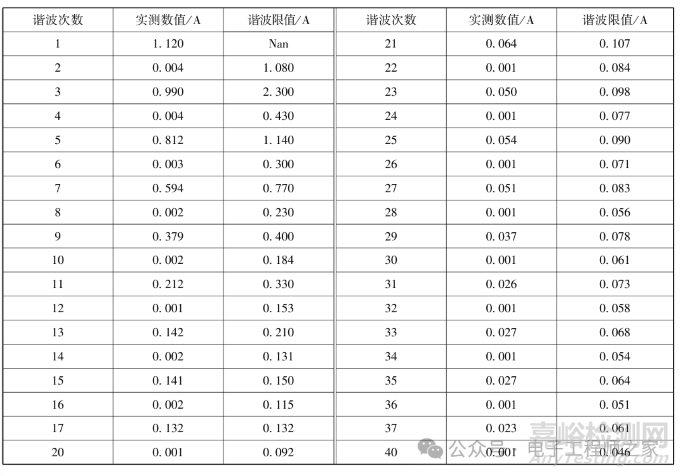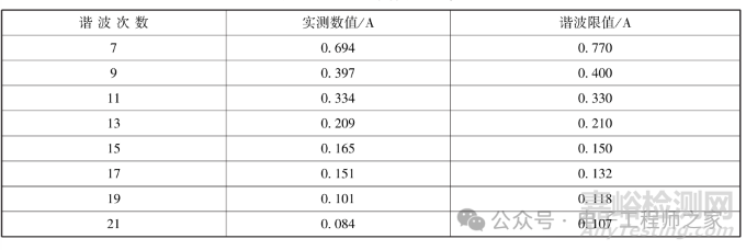 采用這一方法后實測諧波電流值如下表所示,測試通過: