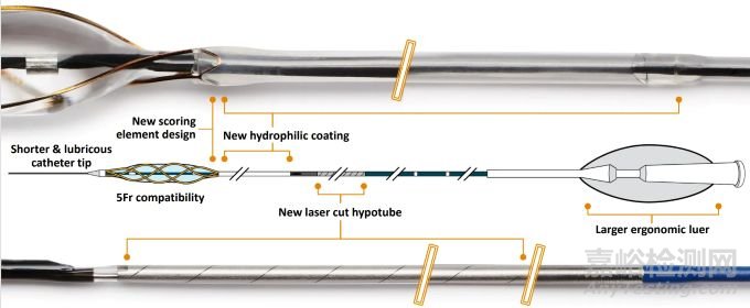 a)通過(guò)使用全新的親水潤(rùn)滑涂層提高潤(rùn)滑性和降低了導(dǎo)管的通過(guò)外徑,可適配 5F的GC (AngioSculpt Rx適配6F GC) 使得產(chǎn)品的輸送性能得到提升;