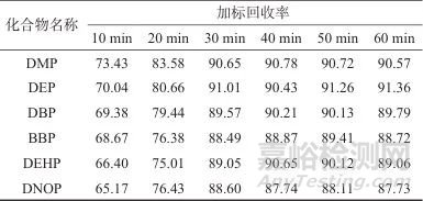 實(shí)際的樣品中,鄰苯二甲酸酯類可能被肥料基體牢牢地吸附著,要經(jīng)過有效的提取方法才可提取出來。而加標(biāo)試驗(yàn)是人為添加目標(biāo)物,如未經(jīng)過長時(shí)間的吸附作用,目標(biāo)物只存在于樣品的表面,當(dāng)加入提取溶劑時(shí),目標(biāo)物就會立即溶解于提取溶劑,這就不能客觀真實(shí)地反映提取過程的有效性。