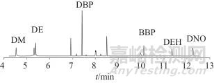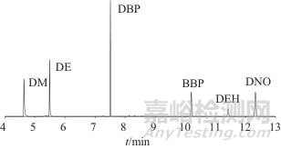 6種鄰苯二甲酸酯類混合標(biāo)準(zhǔn)儲備液:質(zhì)量濃度均為2 000 mg/L,6種組分分別為鄰苯二甲酸二甲酯(DMP)、鄰苯二甲酸二乙酯(DEP)、鄰苯二甲酸二正丁酯(DBP)、鄰苯二甲酸丁基芐基酯(BBP)、鄰苯二甲酸二(2-乙基)己基酯(DEHP)、鄰苯二甲酸二正辛酯(DNOP),上海安譜實(shí)驗(yàn)科技有限公司。